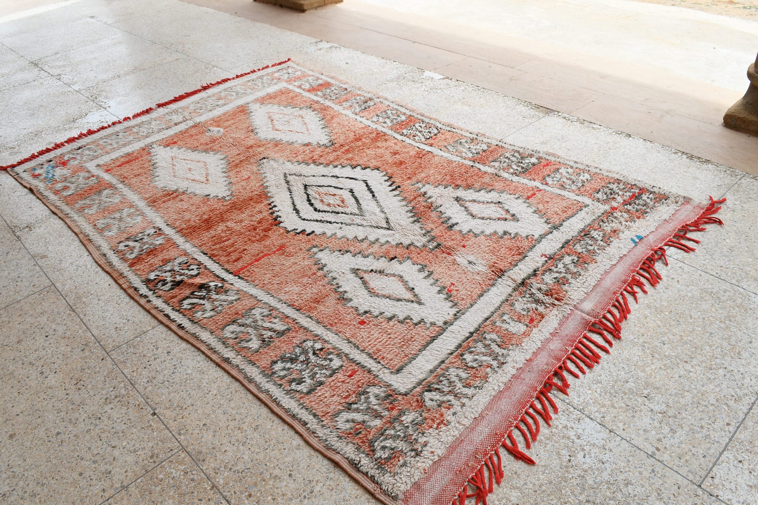 Whether you’re seeking to define a seating area, add a pop of color to your bedroom, or simply elevate your home décor, our Vintage Moroccan rug is the perfect choice. Its timeless design seamlessly complements both traditional and contemporary aesthetics, adding a touch of exotic allure to your space.