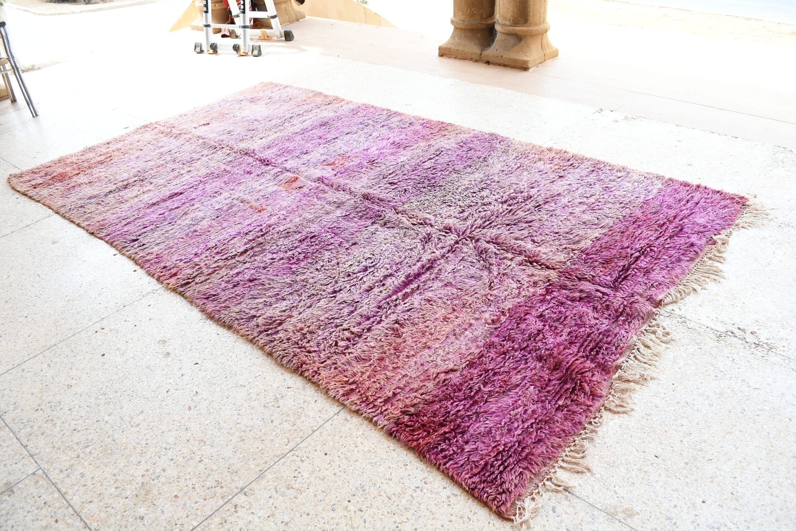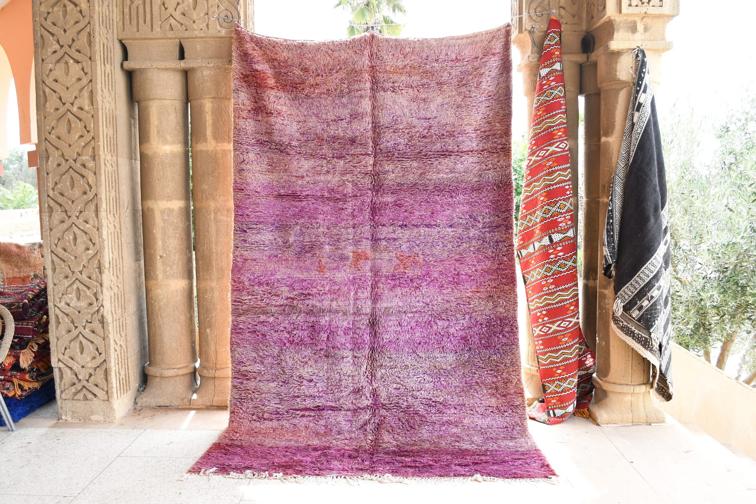 Indulge in the rich history and vibrant colors of our Vintage Moroccan rug. This masterpiece is meticulously handwoven by skilled artisans, using centuries-old techniques that ensure its exceptional durability and timeless appeal. Crafted from the finest wool and natural dyes, this rug exudes a luxurious texture that adds warmth and comfort to any space. Its intricate patterns and bold hues are inspired by traditional Moroccan designs, bringing a touch of exotic charm to your home. Whether you’re seeking a cozy accent piece for your living room or a statement-making centerpiece for your dining area, this rug is sure to become a cherished heirloom. Experience the beauty and quality of authentic Moroccan craftsmanship with WeBerber. Order your Vintage Moroccan rug today and elevate your home decor to new heights!