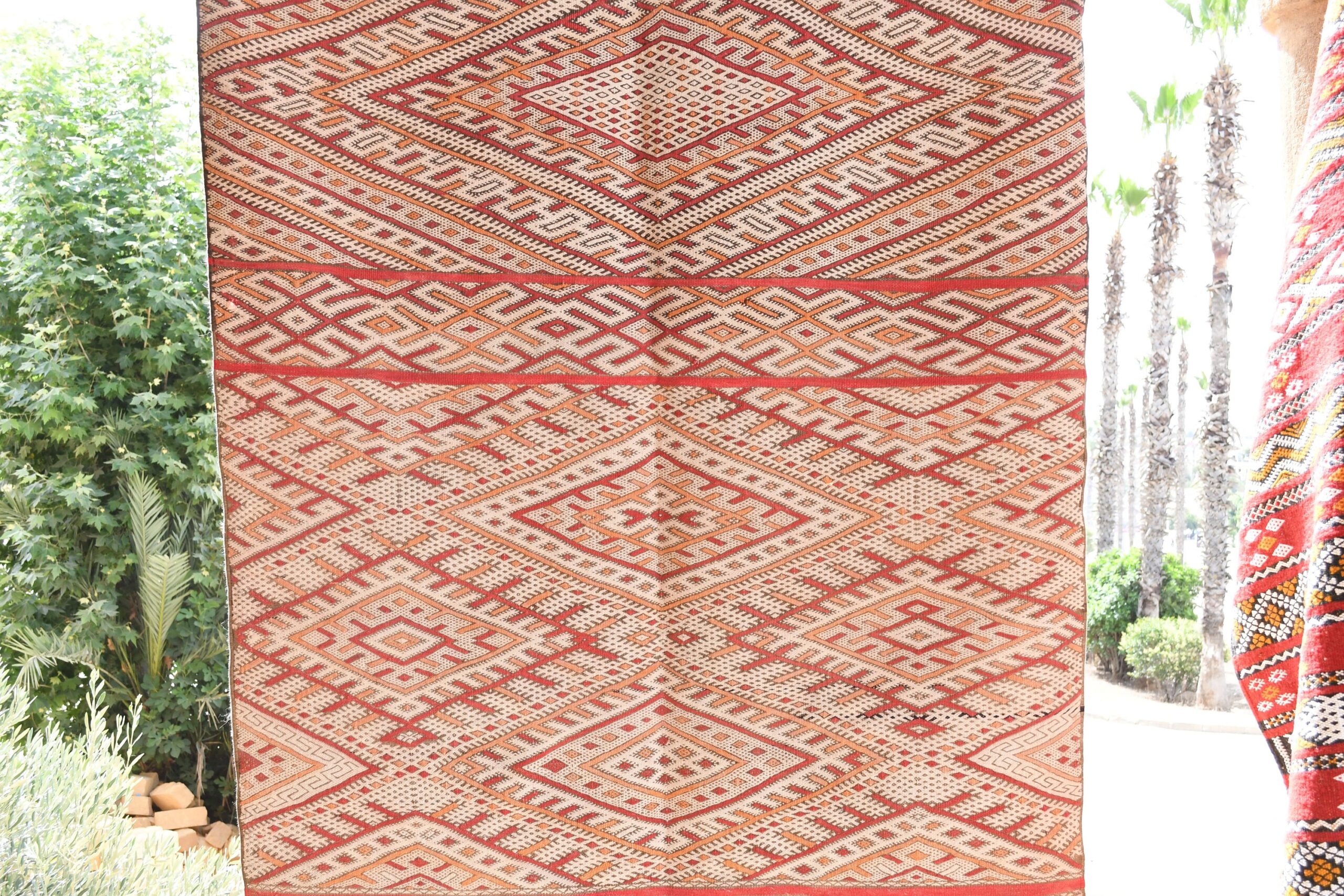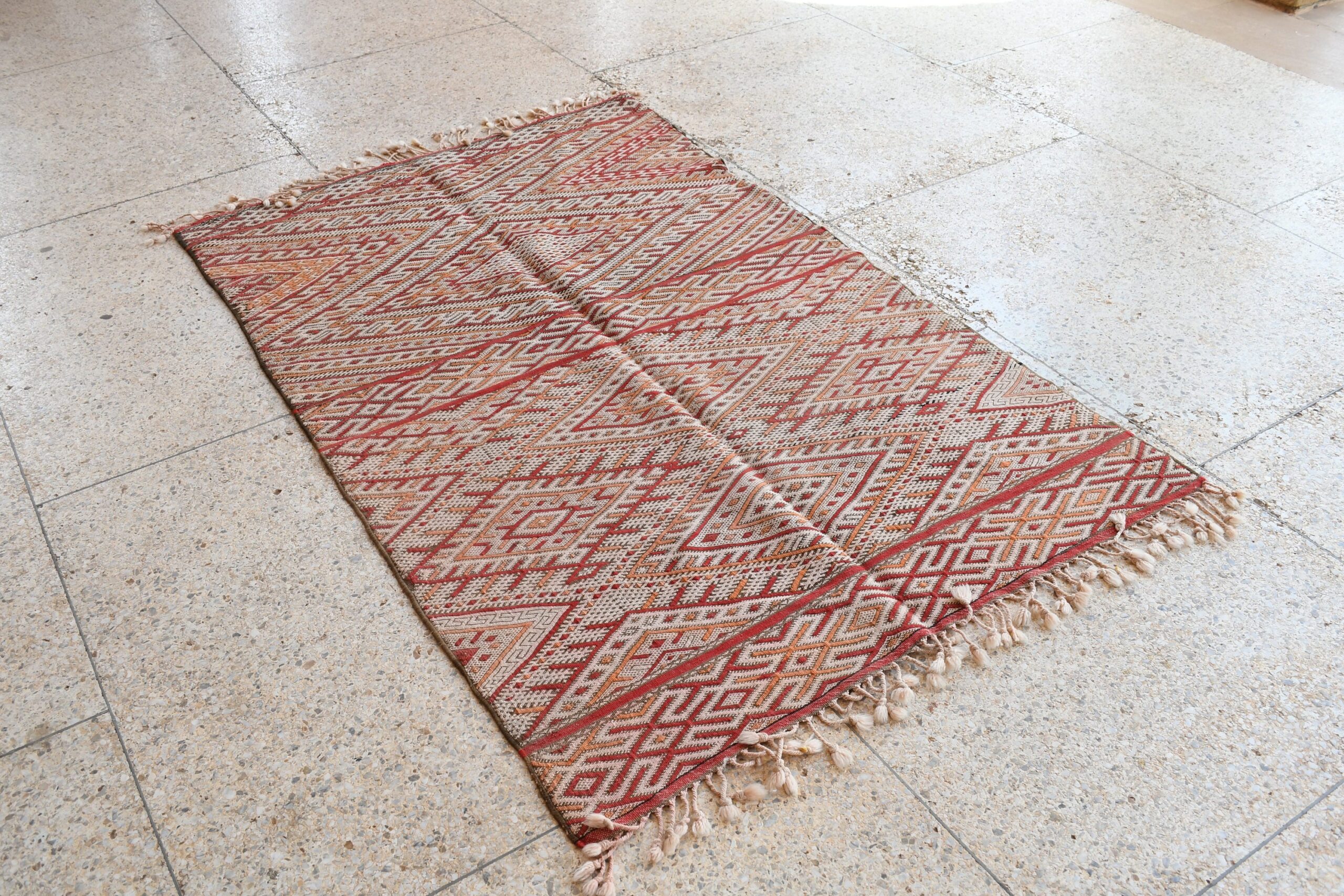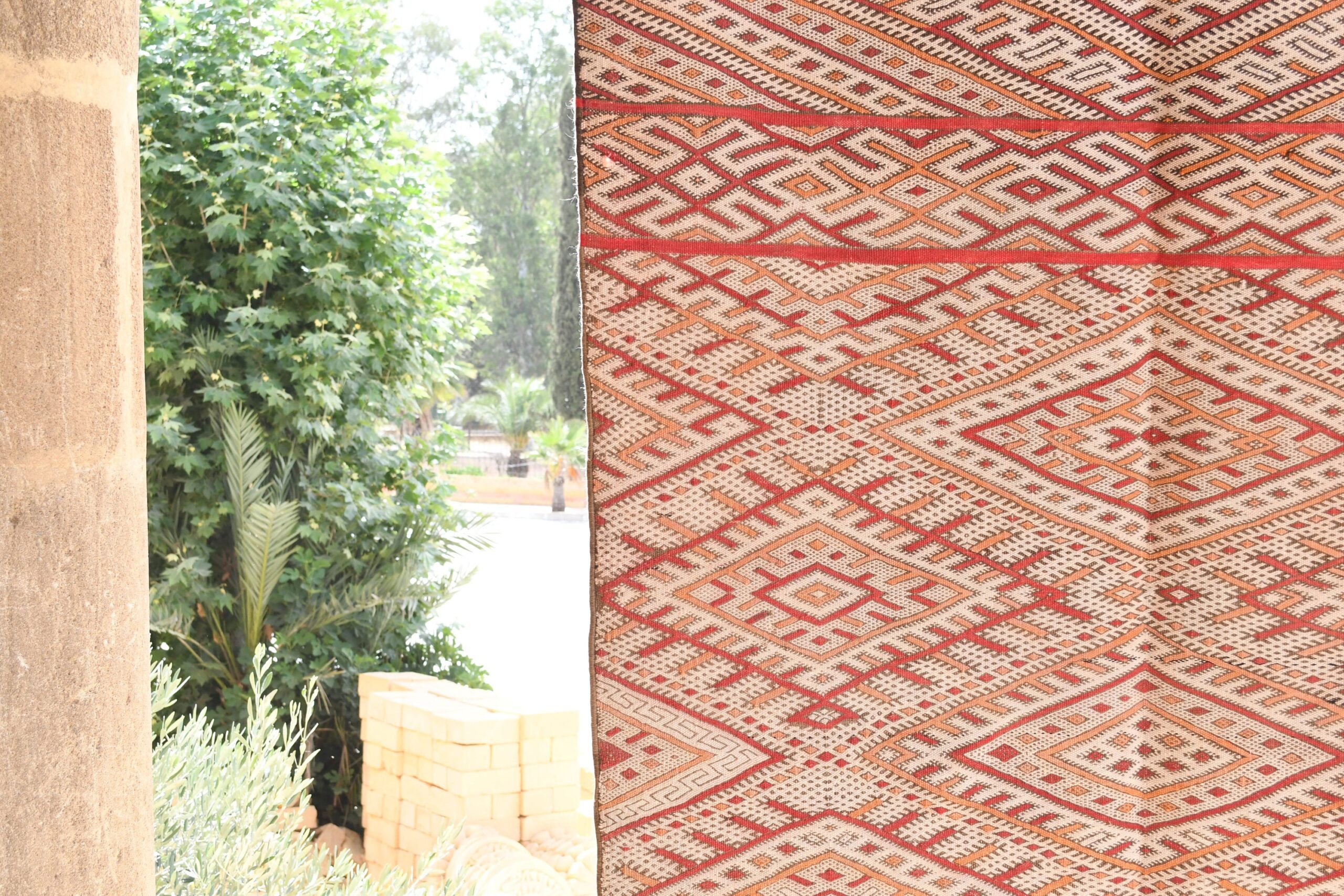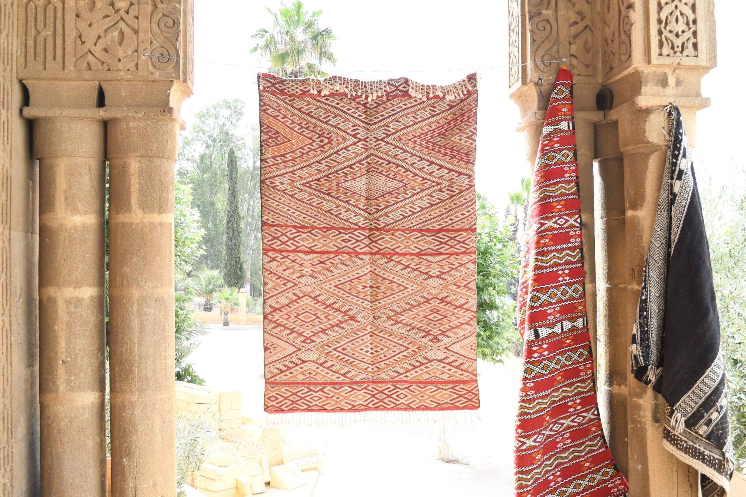 Indulge in the timeless charm of our authentic Berber rug, meticulously handwoven in the heart of Morocco. Its intricate geometric patterns and soft, plush texture create a captivating focal point in any room.