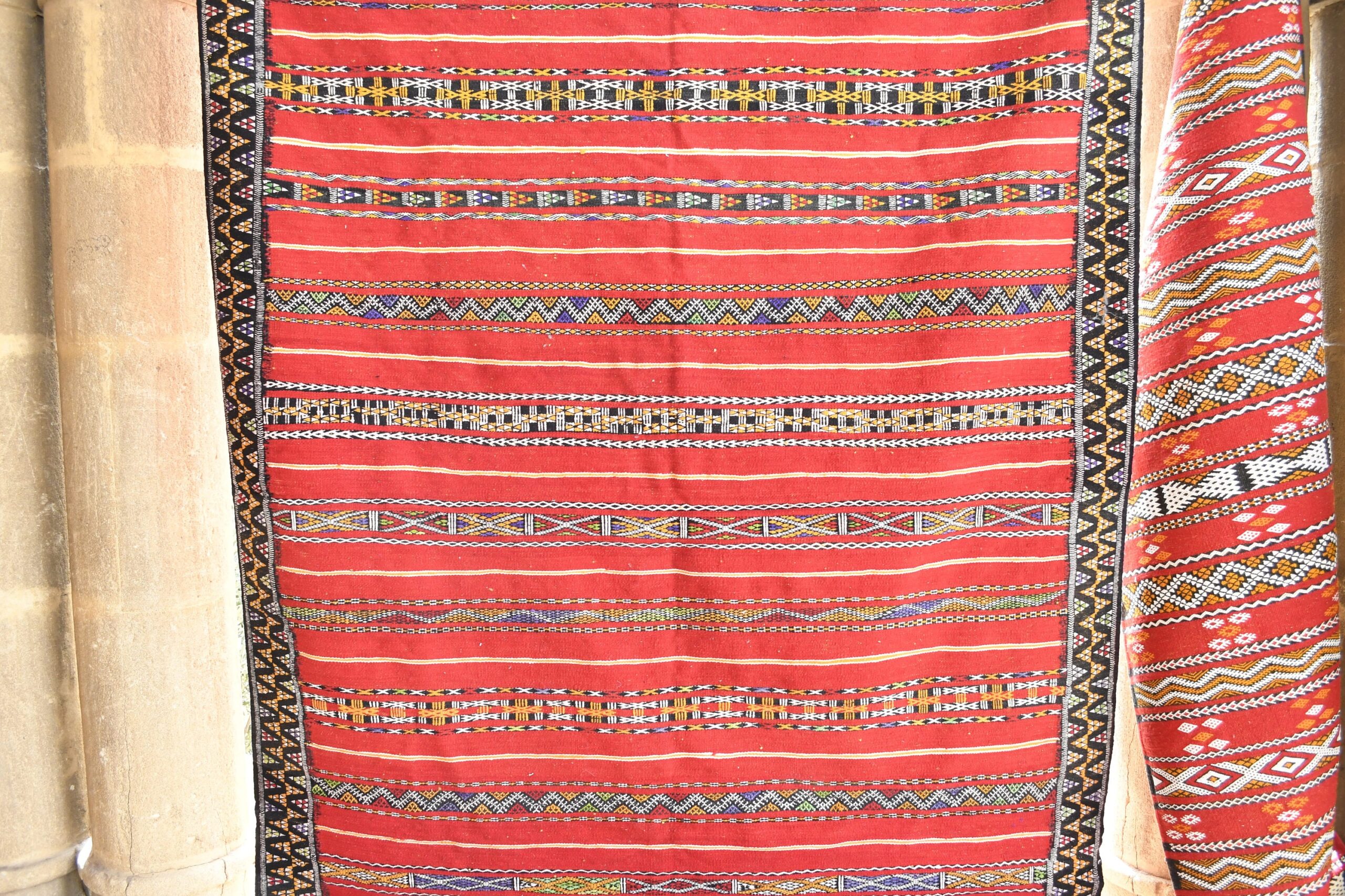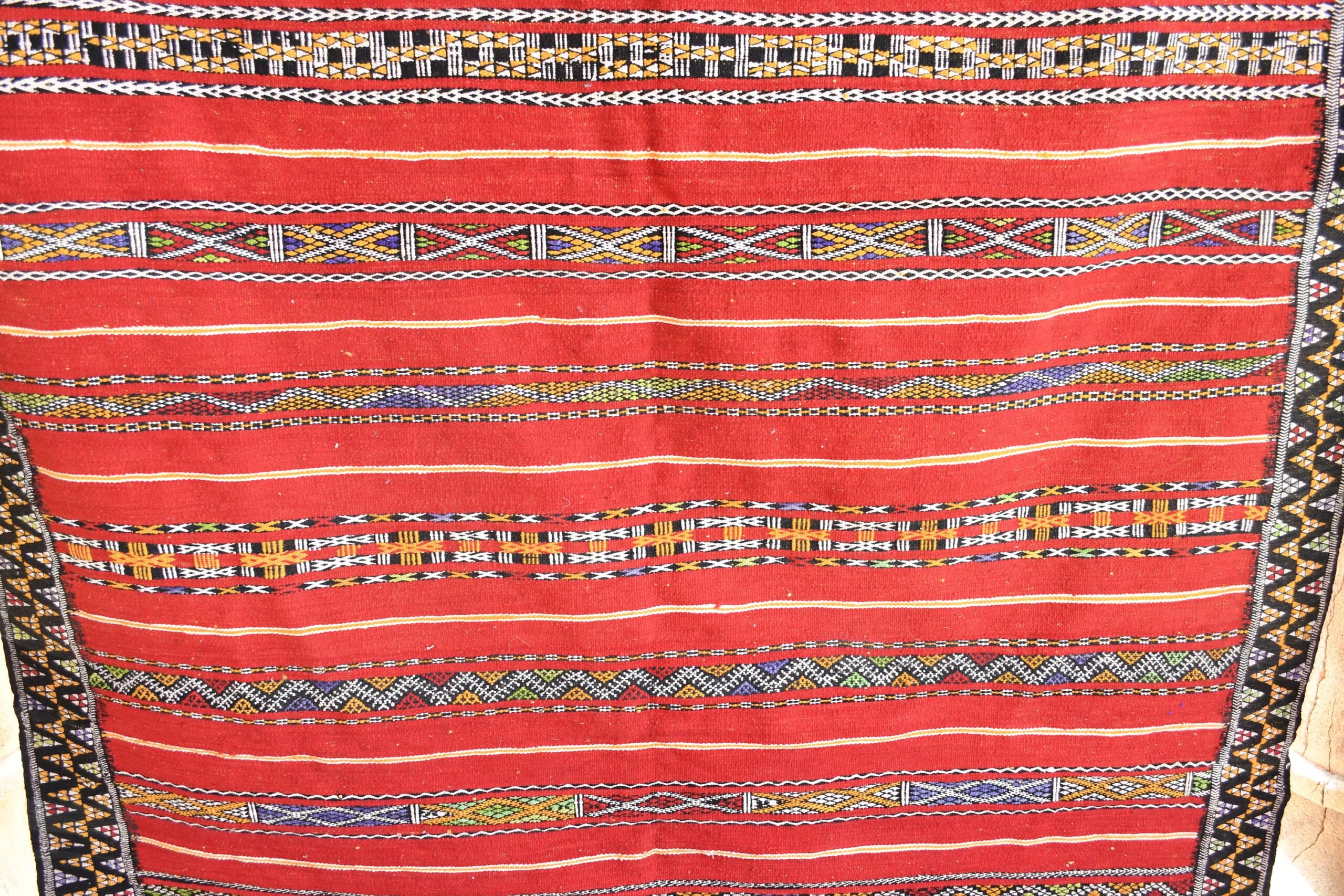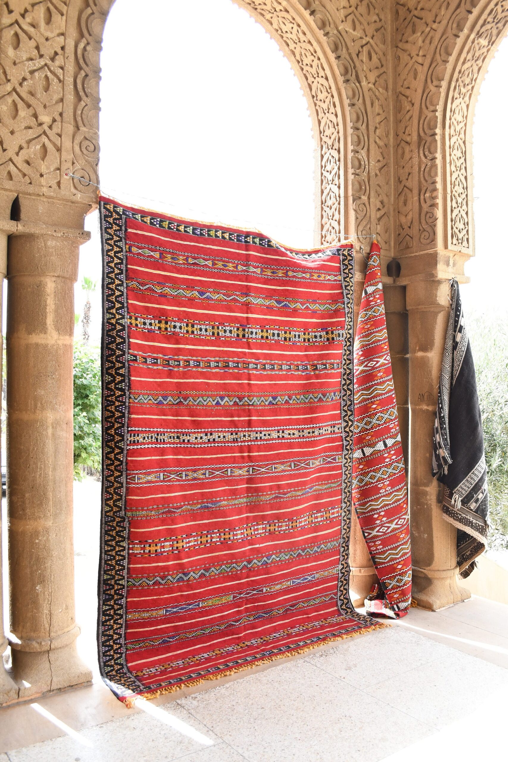 a red and black rug hanging on a wall. il_fullxfull.6023061530_e1zd.jpgBerber Rug: Vintage Moroccan Rug with Authentic Charm 287 cm x 189 cm / 9.184ft x 6.048 ft