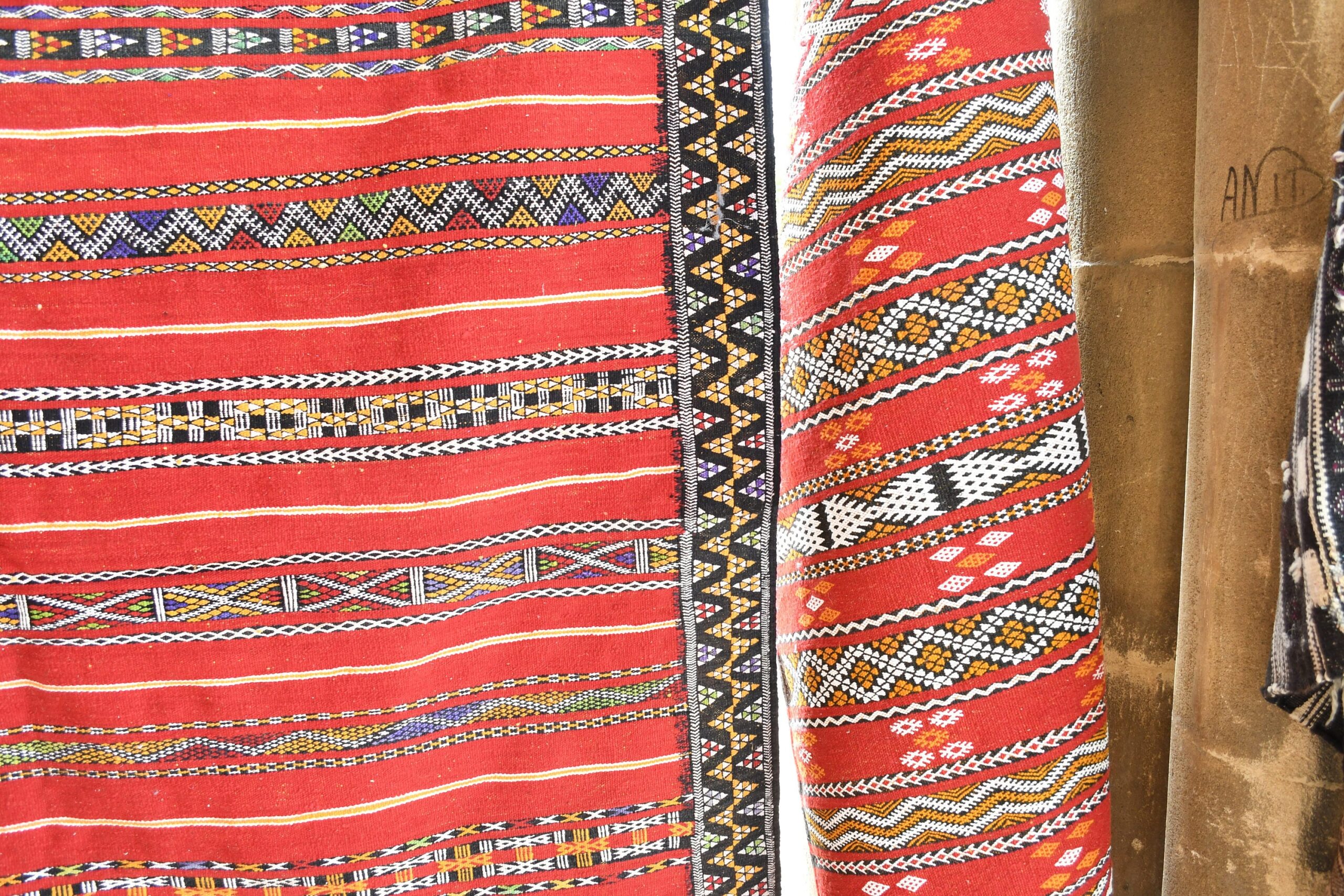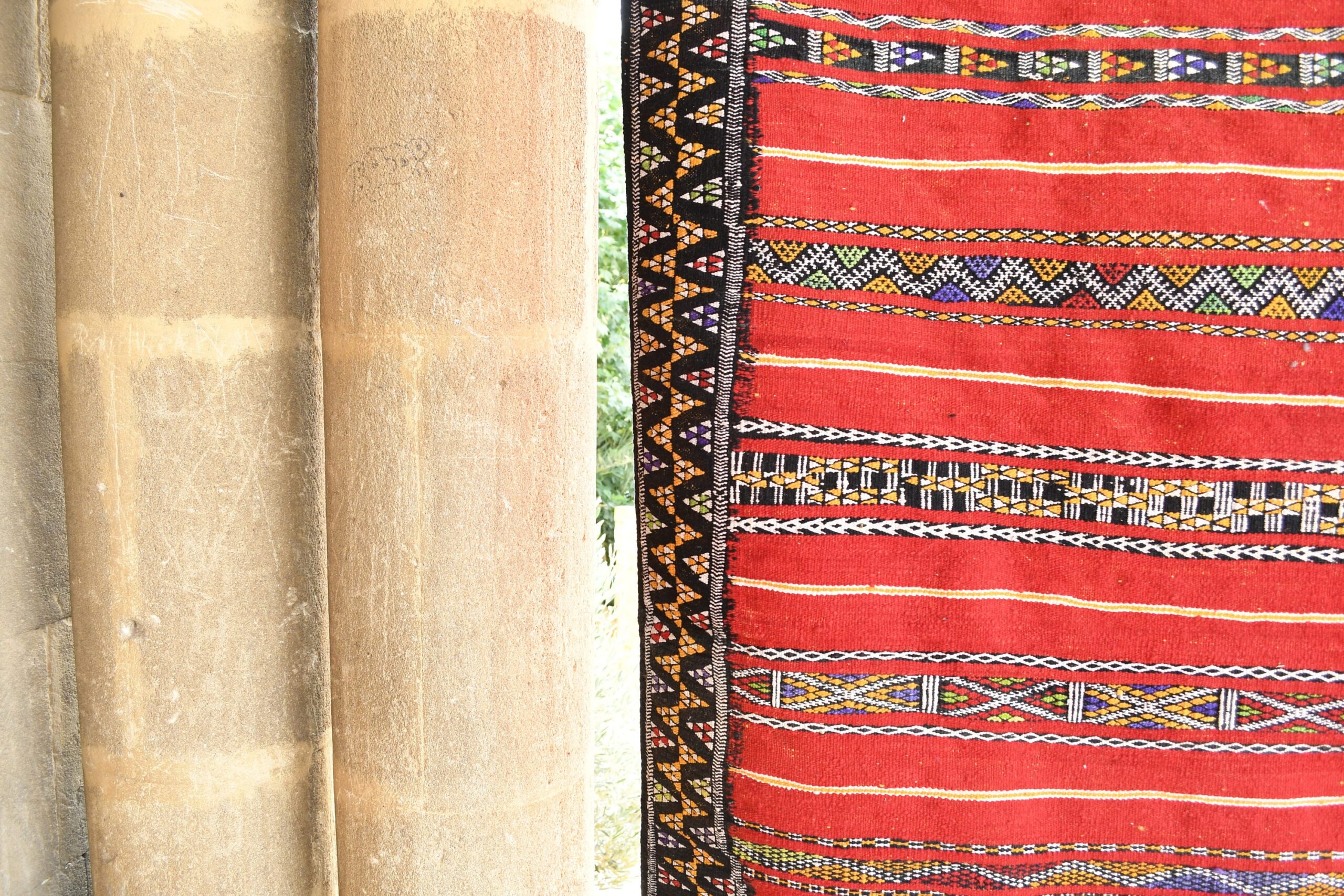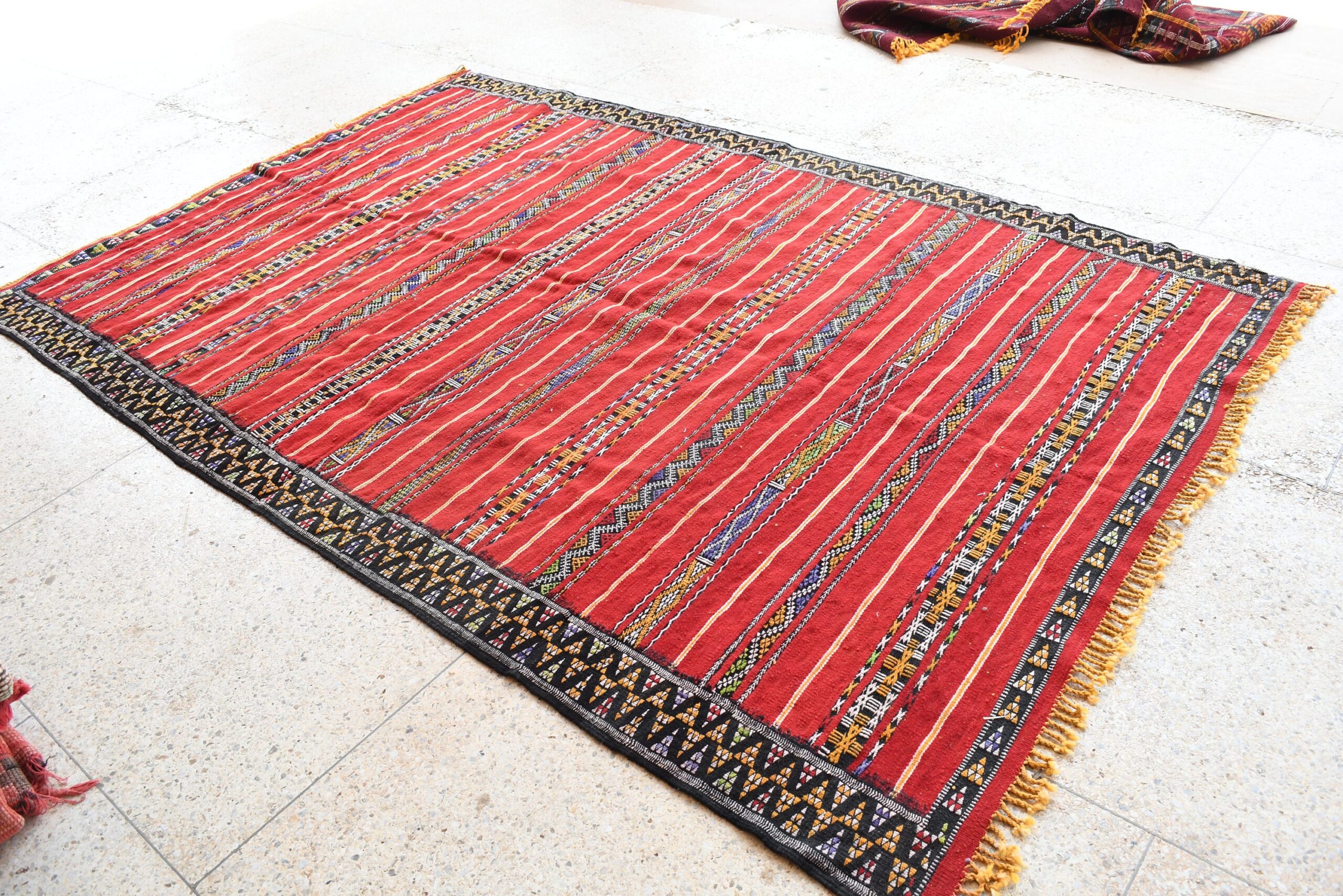 a red and black rug hanging on a wall. il_fullxfull.6023061530_e1zd.jpgBerber Rug: Vintage Moroccan Rug with Authentic Charm 287 cm x 189 cm / 9.184ft x 6.048 ft