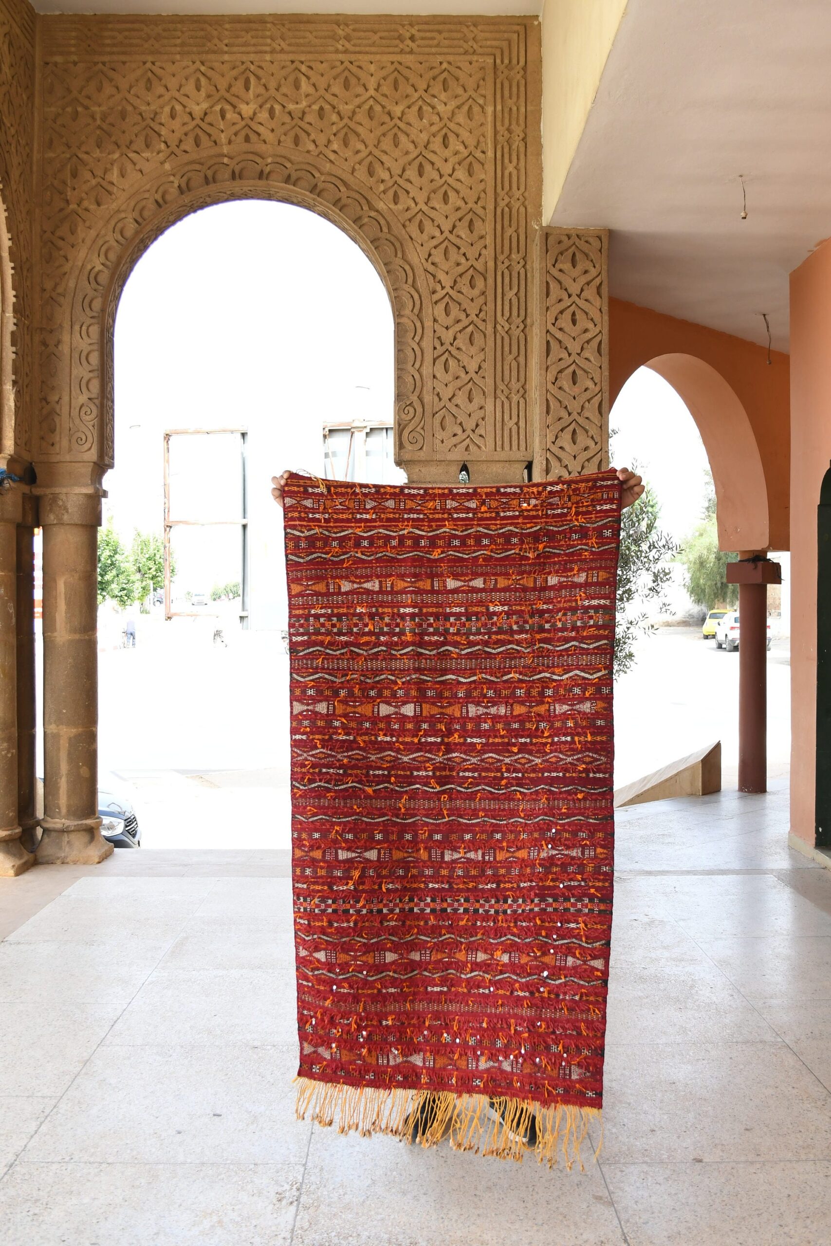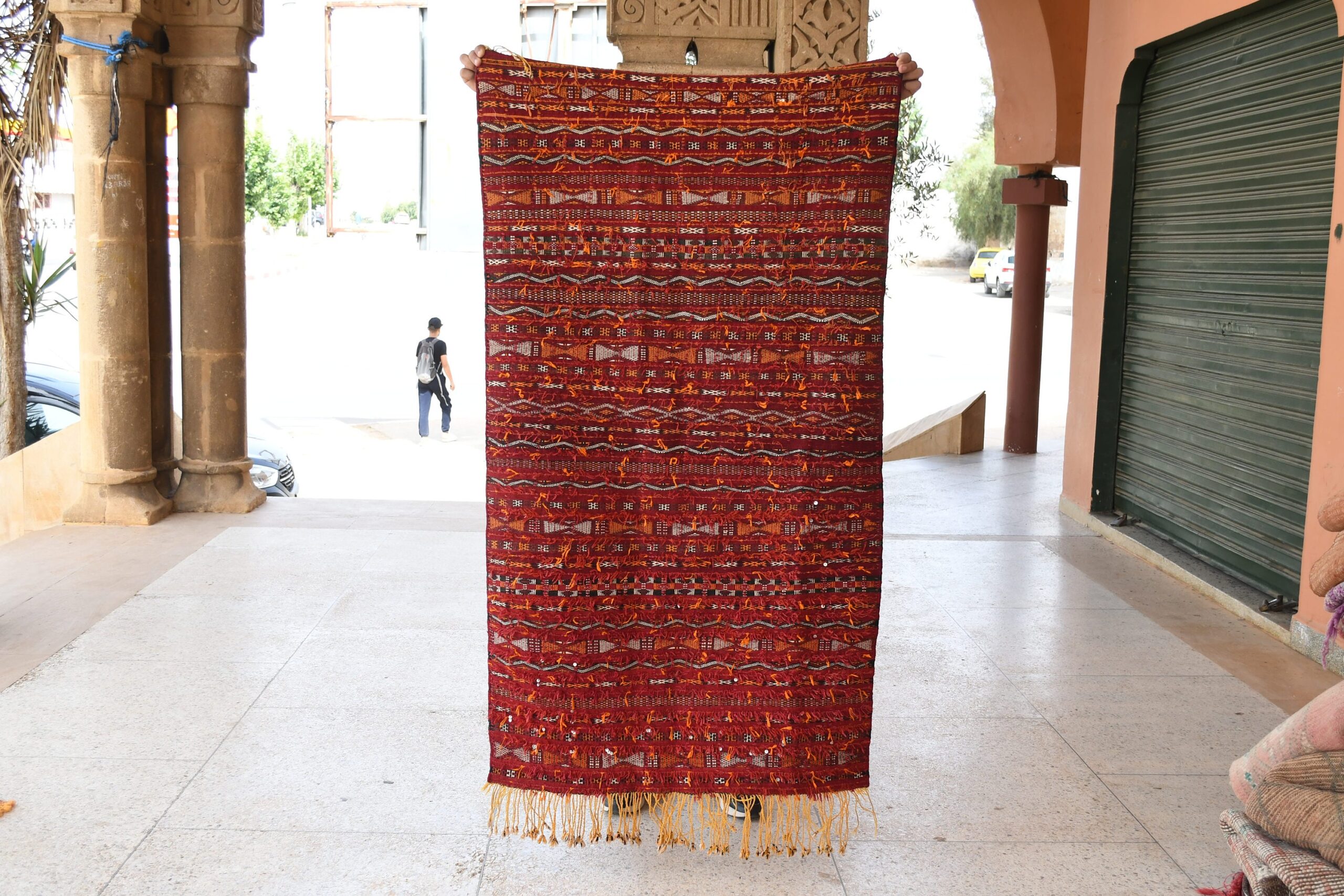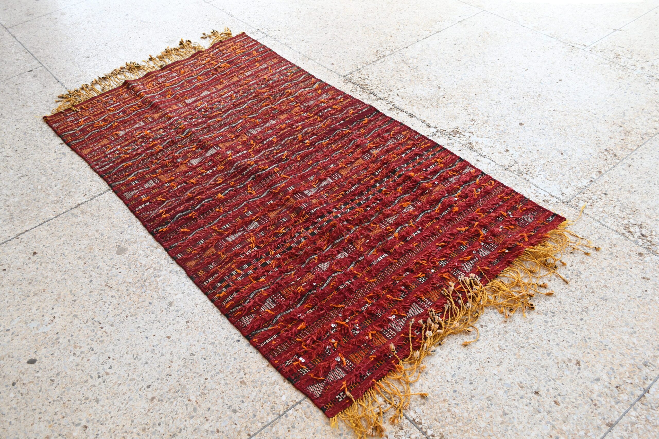 Zemmour Kilim: Authentic Moroccan Silk Rug with Vintage Charm 165 cm x 91 cm / 5.28ft x 2.912 ft